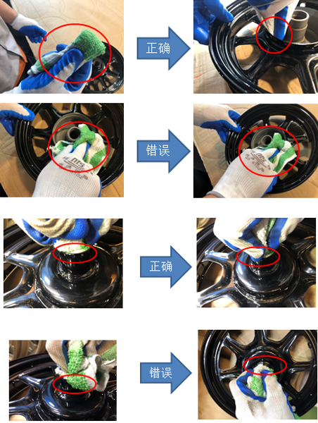 首先、朱新華主任針對8月份客戶反饋不良信息及不良圖片與在座培訓(xùn)人員展開細(xì)節(jié)講解,他于會上提到:8月份特黑產(chǎn)品共計發(fā)貨6180只,其中不良的前輪有76只,后輪96,不良占比2.78%。上述的這些不良,都是由于我司員工在蘸取藥劑進行擦拭過程中,沒有嚴(yán)格按照作業(yè)標(biāo)準(zhǔn)及其注意點而產(chǎn)生的。這些不良又都是需要經(jīng)過一段時間后才能顯現(xiàn),所以,過程中的標(biāo)準(zhǔn)作業(yè)對于問題的杜絕顯得尤為重要。