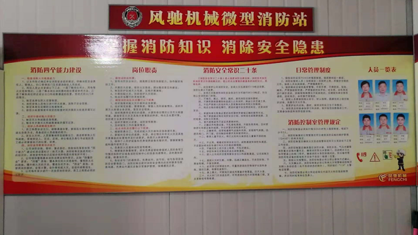 公司內(nèi)部設立微型消防站,配備專職消防人員,配齊具備的消防器材,定期對消防專職人員進行消防安全知識、技能演練培訓,同時還配了小型消防車,確保萬無一失。