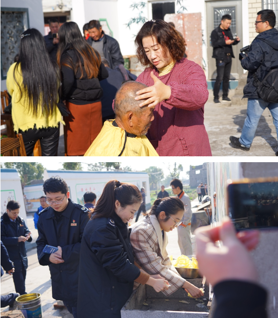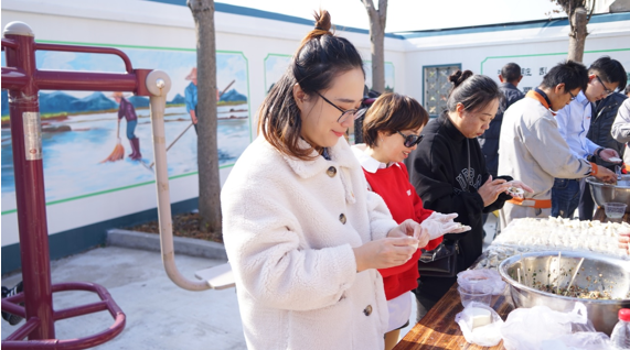 上午9時,黨員們來到勝鹽村后就各司其職,奔赴在各個“崗位”上開始忙碌起來,洗菜切菜、量血壓、理發(fā)、唱越劇、包餃子,現(xiàn)場充滿著溫馨和諧的氣氛。