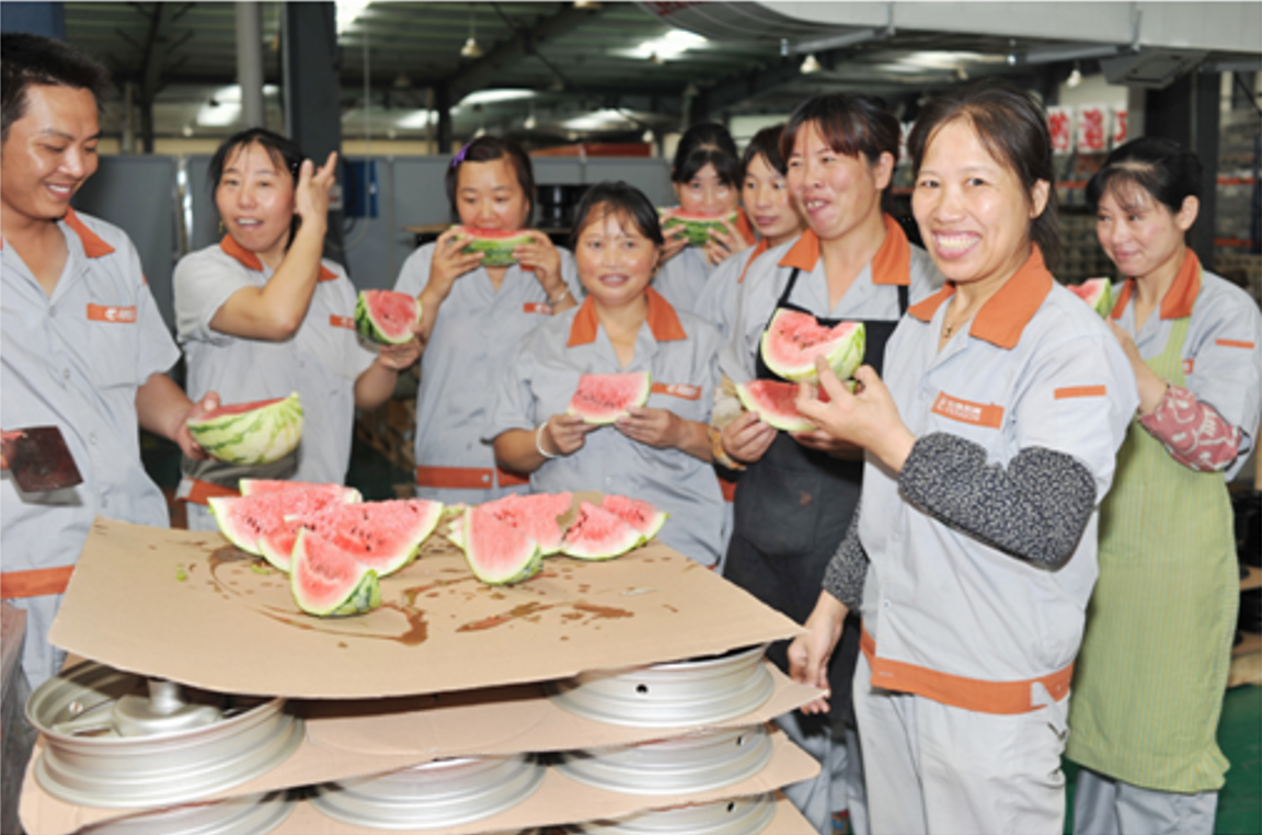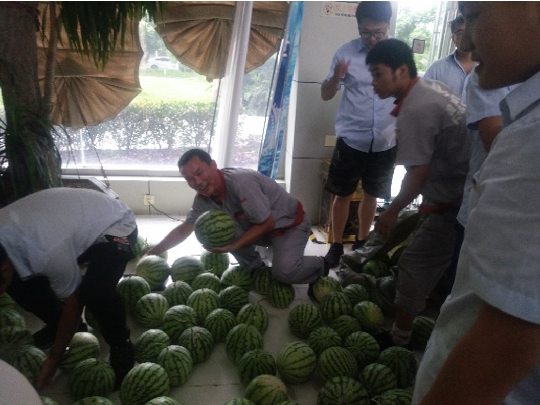 當天,隨著鎮工會運輸車的開進,企業各部門組織員工積極幫忙搬運,各個臉上洋溢著喜悅,大家一起幫忙將西瓜、飲品、防暑降溫等用品送達到員工手中,這意味著將公司的這份關懷傳遞到了員工們的心中,給炎炎夏日帶來了一縷清涼。